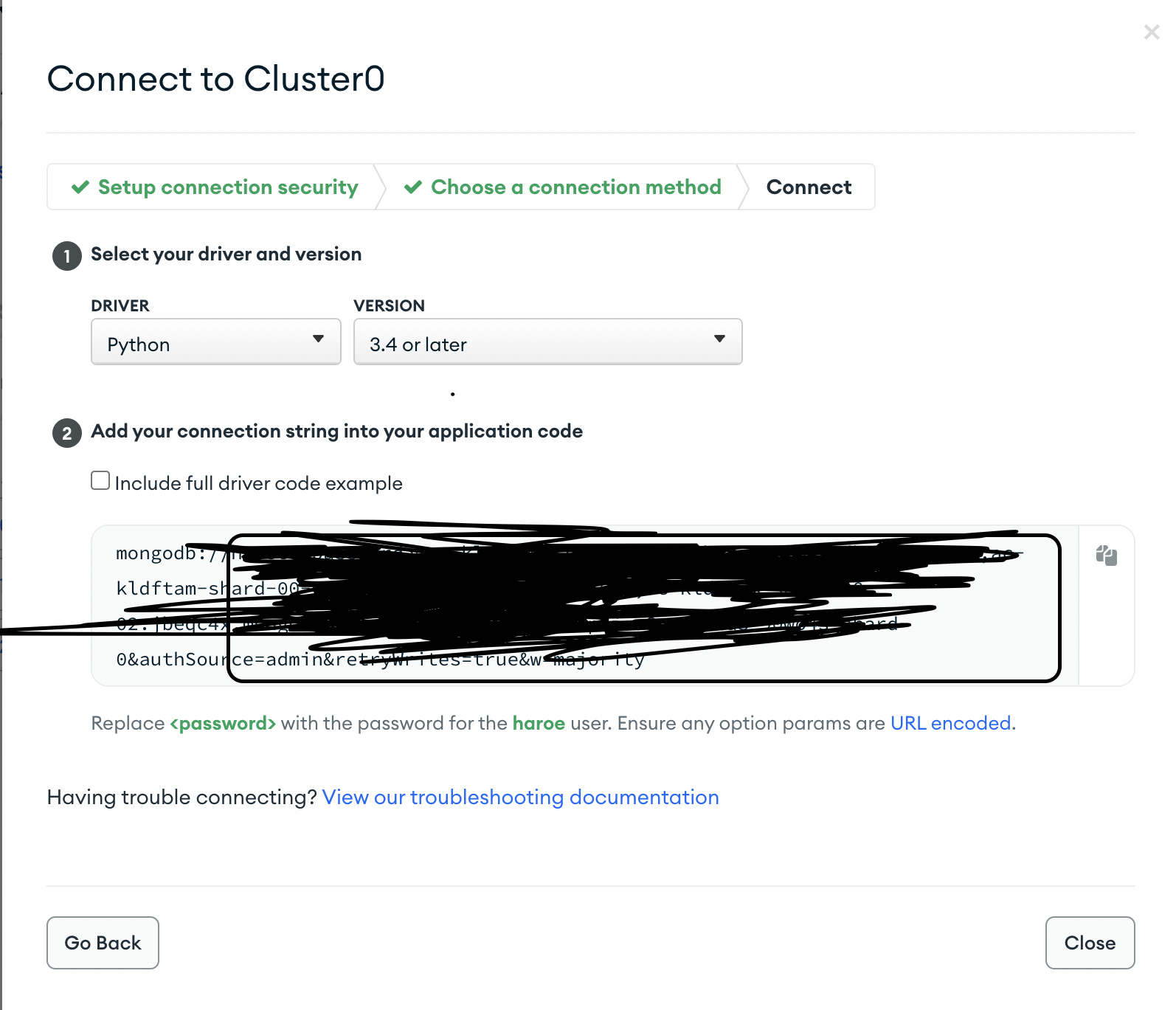 - 아래 접속 화면에서 3.4 or later 를 선택해주세요~ 그러면 SRV 가 포함되지 않은 url 주소가 나옵니다!