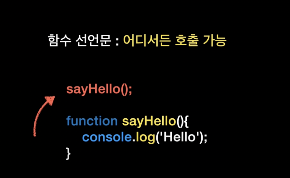 사실 함수 선언문과 함수 표현식은 실행하는 방식과 동장하는 방식도 동일해서 차이를 잘 느끼지 못합니다. 그럼 그 차이가 뭔지 살펴 보시죠 함수 선언문 어디서든 호출할 수 있습니다. 기본적으로 자바스크립트는 위에서 아래로 차례대로 한줄 씩 읽으면서 실행합니다. 이렇게 순차적으로 실행되고 즉시 반환하는 프로그래밍 언어를 인터프린터 언어라고 합니다. 그런데 이 코드는 실행이 됩니다. 왜 일까요? 이것은 자바 스크립트 내부 알고리즘 때문인데요 자바스크립트는 실행전 초기화 단계에서 코드의 모든 함수 선언문을 찾아서 생성해 둡니다. 그래서 우리가 보는 범위(ex. function 함수 안)와 다르게 사용가능한 범위가 굉장히 커지는데요 이것을 호이스팅(hoisting)이라고 합니다. 함수 표현식 코드에 도달하면 생성..
